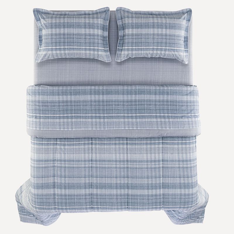 O edredom Samuel é ideal para quem quer renovar a cama com frescor e atitude. Com estampa xadrez em tons de azul, é dupla face e apresenta variações sutis de padrão e textura entre os lados, permitindo composições versáteis e equilibradas. O acabamento termobond evita o deslocamento do enchimento, garantindo maior durabilidade e um caimento sempre impecável. Confeccionado em algodão 200 fios, proporciona aconchego e um toque contemporâneo que valoriza qualquer ambiente.