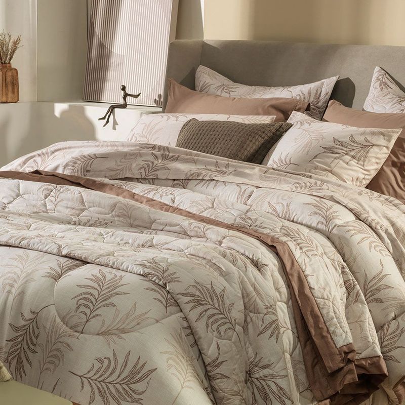 Com folhas secas em estampa delicada, o jogo de cama Silas expressa uma conexão com a natureza. Em tons terrosos, como marrom e bege, transmite aconchego e leveza de forma orgânica. As cores e formas dessa estampa foram escolhidas com carinho para proporcionar um descanso sereno e tranquilo em todos os momentos. O toque suave do algodão, com suas propriedades hipoalergênicas e altamente respiráveis, proporciona a melhor experiência para sua pele.
