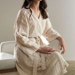 Confeccionado em tecido jacquard fio tinto, conhecido por seu toque macio e visual sofisticado, o roupão deve ser lavado com delicadeza, utilizando água fria ou morna e sabão neutro, evitando produtos químicos agressivos que possam danificar as fibras. Após a lavagem, é recomendável secar o roupão à sombra ou em um ciclo suave de secagem na máquina, protegendo os acabamentos delicados de qualquer desgaste.