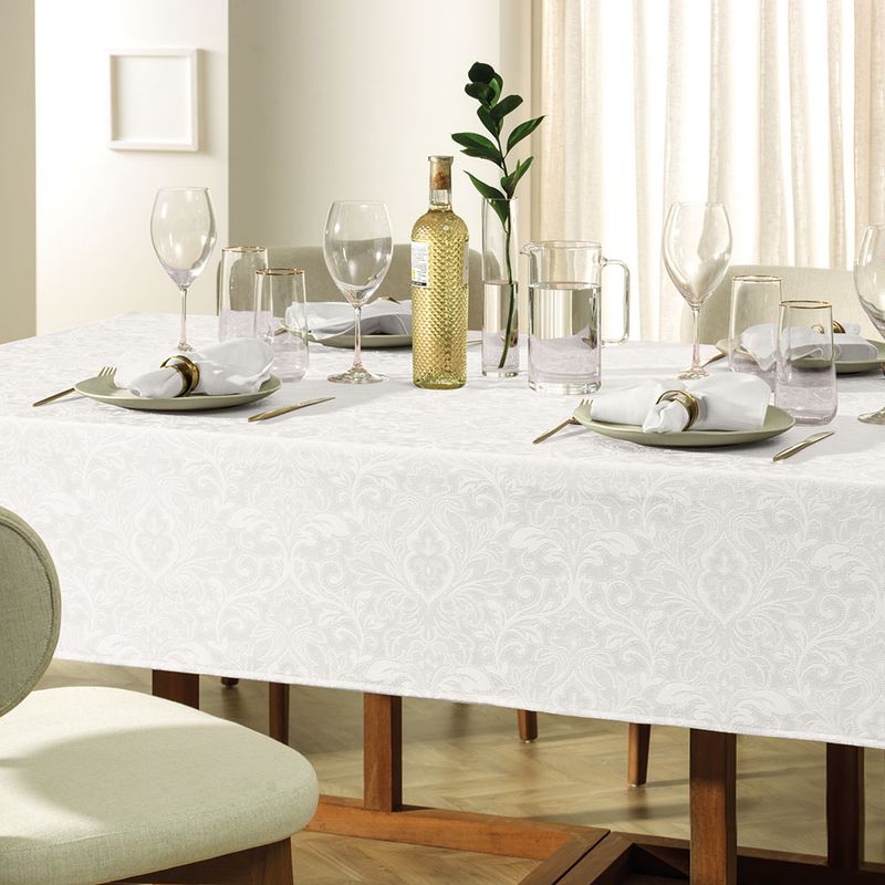 Toalha de Mesa Retangular 8 Lugares Jacquard Blanka Branco
